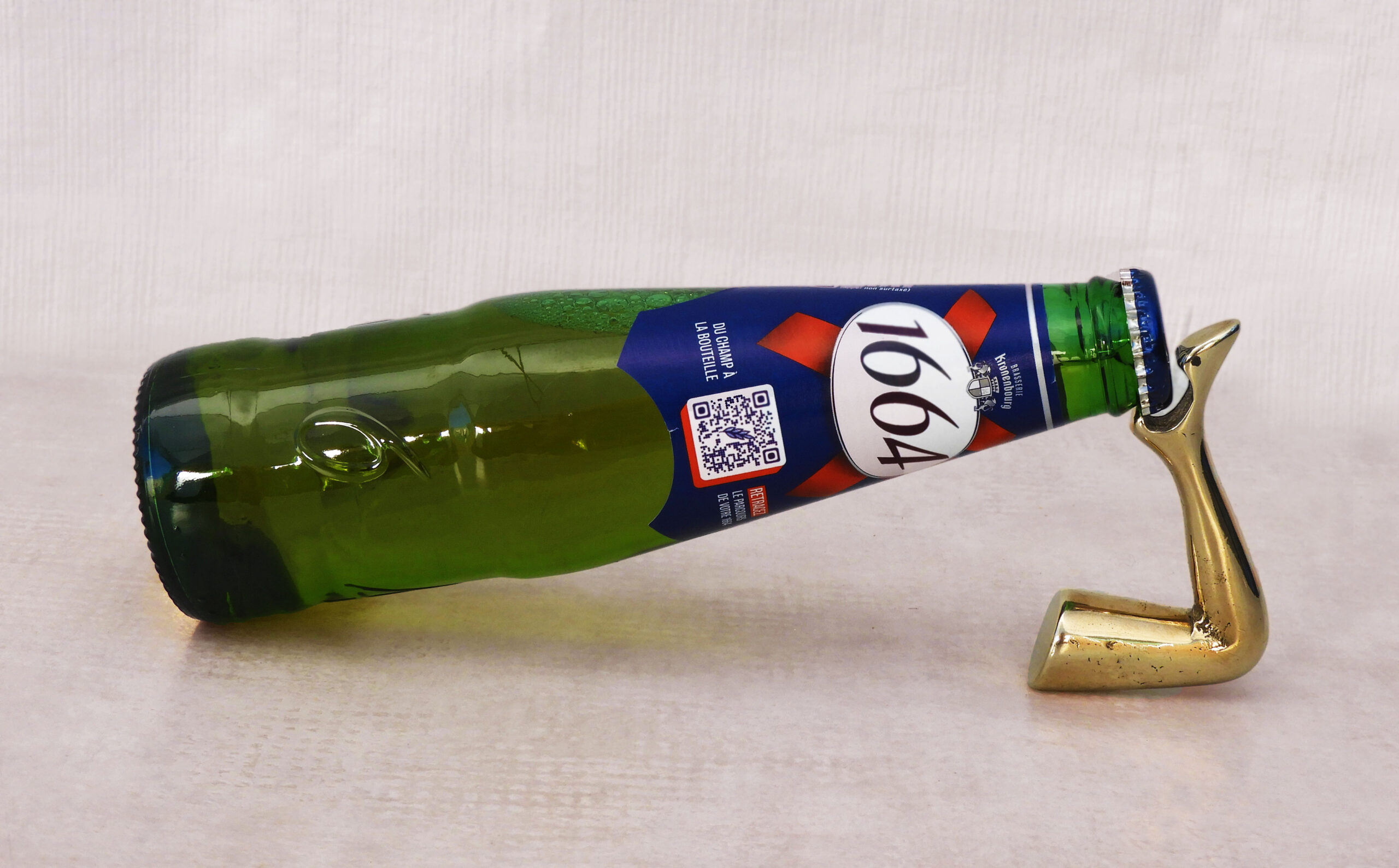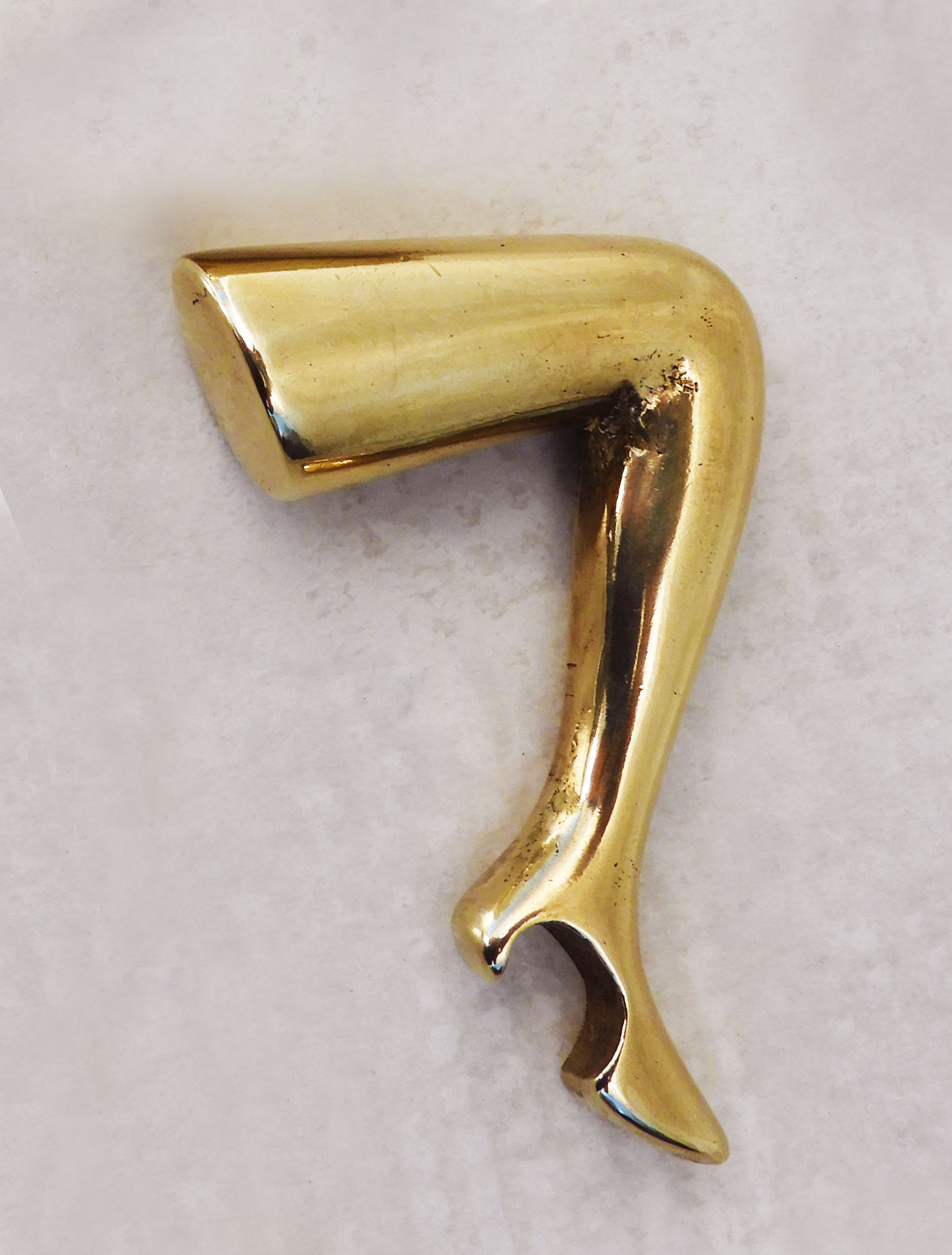 A quirky bottle opener crafted in the form of a shapely woman’s leg and shoe wearing foot. Austrian made, this piece combines playful design with solid craftsmanship — a perfect conversation piece or thoughtful gift. Cast in solid brass, the natural patina retains a warm vintage glow without being over-polished. Showing only minimal signs of age and use consistent with its era. Sold and priced individually, two pieces available. Discount for the pair.