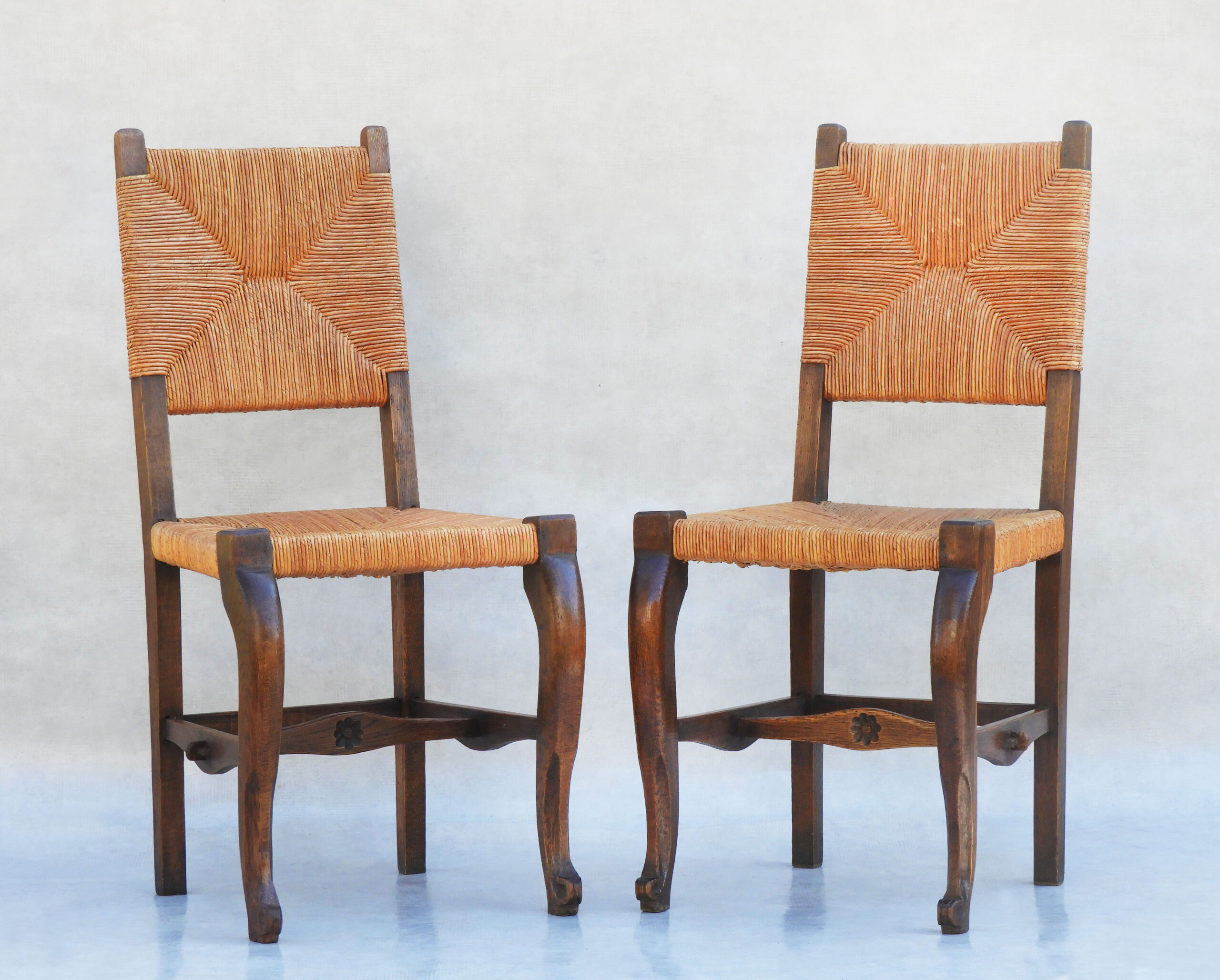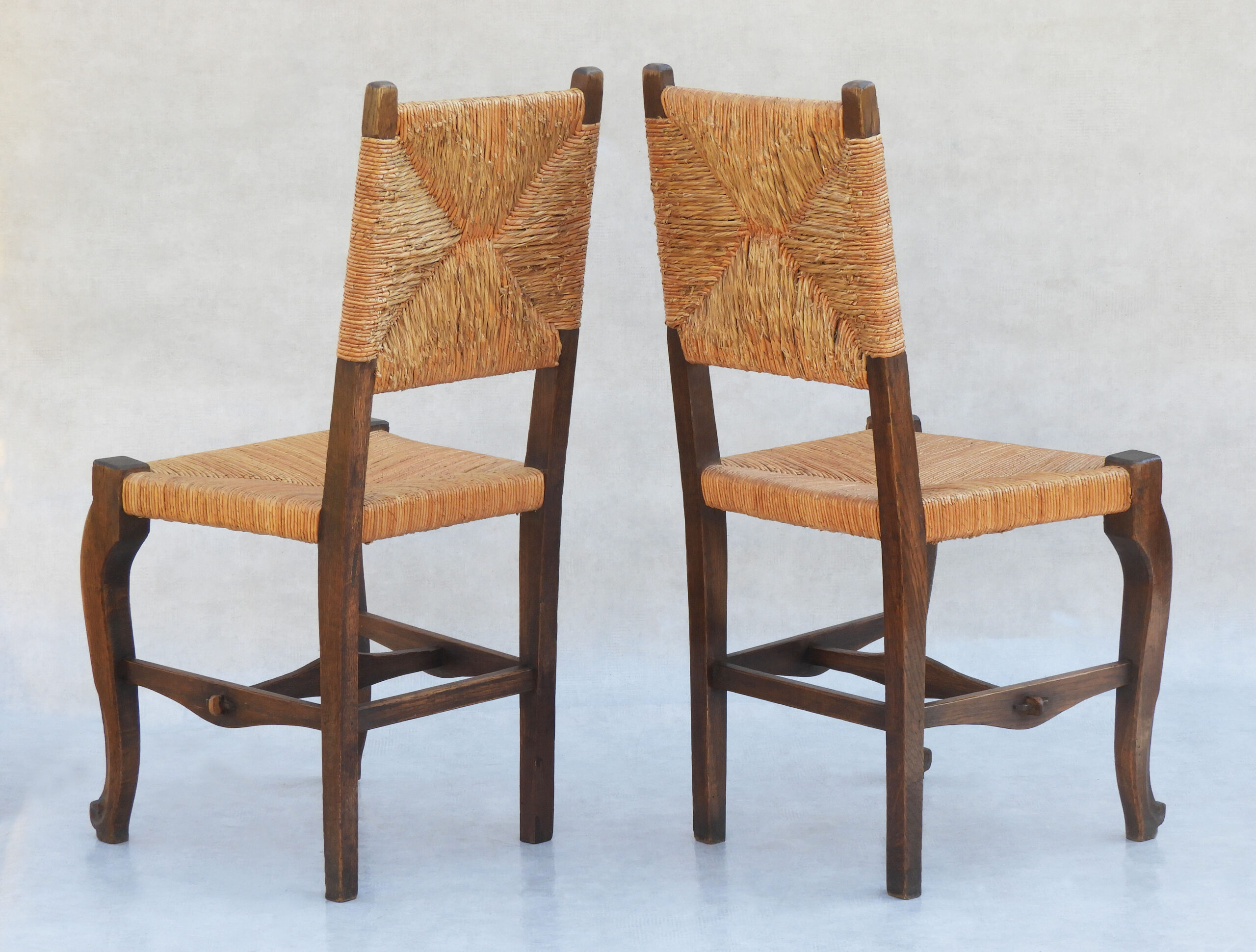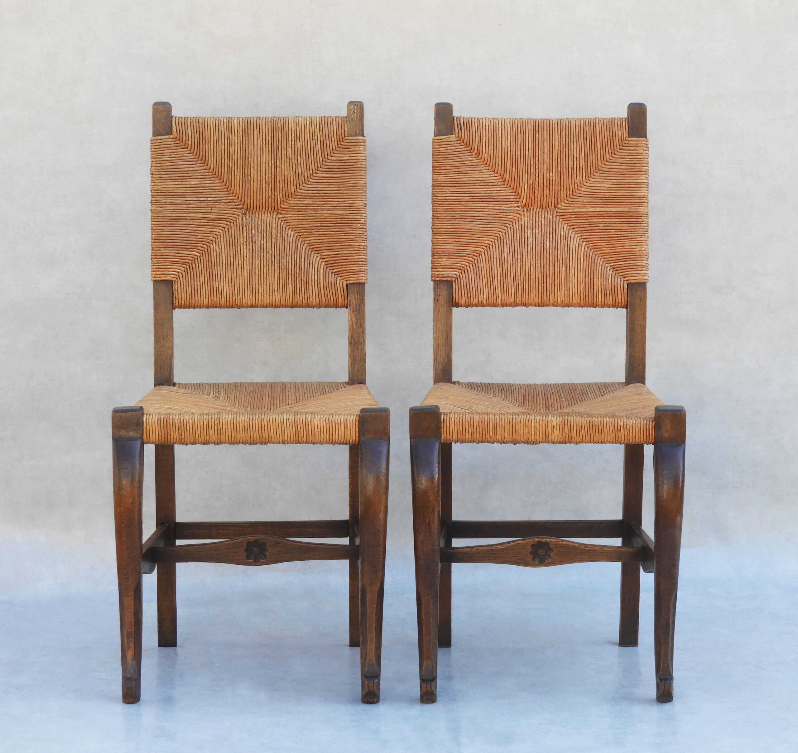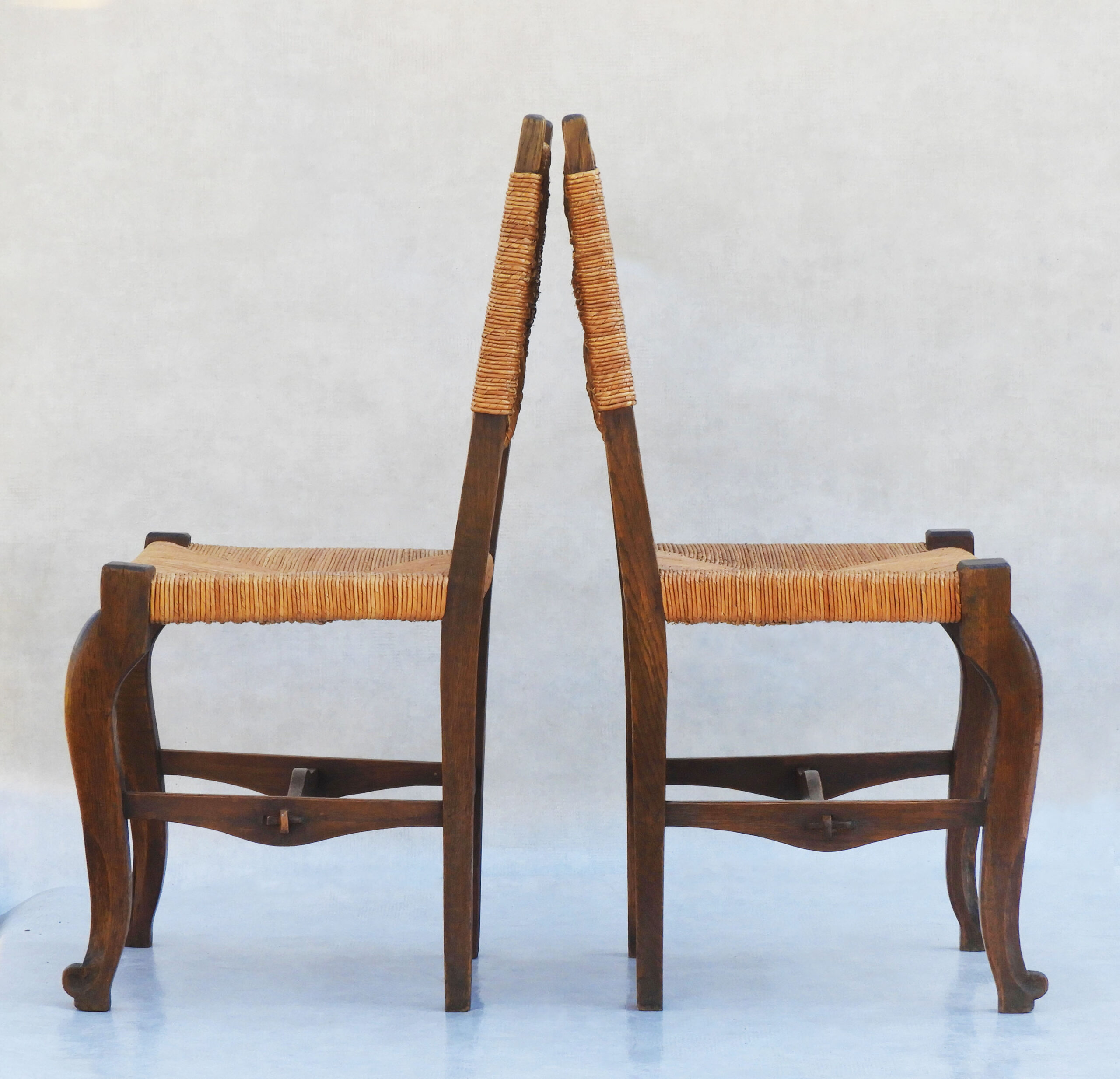 Pair of Provincial French Oak and Rush back Chairs C1920s